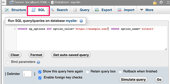 Then, go to the top page and click on SQL. Then, type in the following MySQL query.