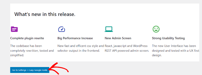 When you turn Easy Google Fonts on, you'll see a welcome screen in your WordPress homepage. Scroll down and click on "Go to Settings → Easy Google Fonts."