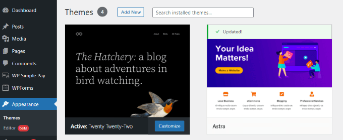 We'll use the Astra theme for this lesson. Depending on the WordPress theme you use, the options will change, though.