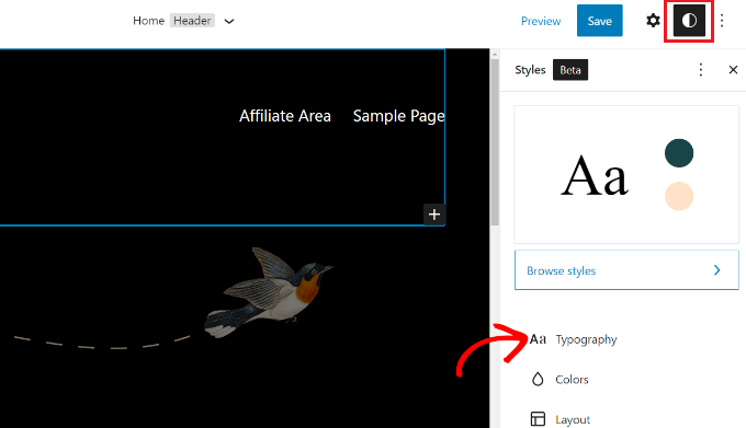 After that, click the Styles button in the upper right corner and then select "Typography."
